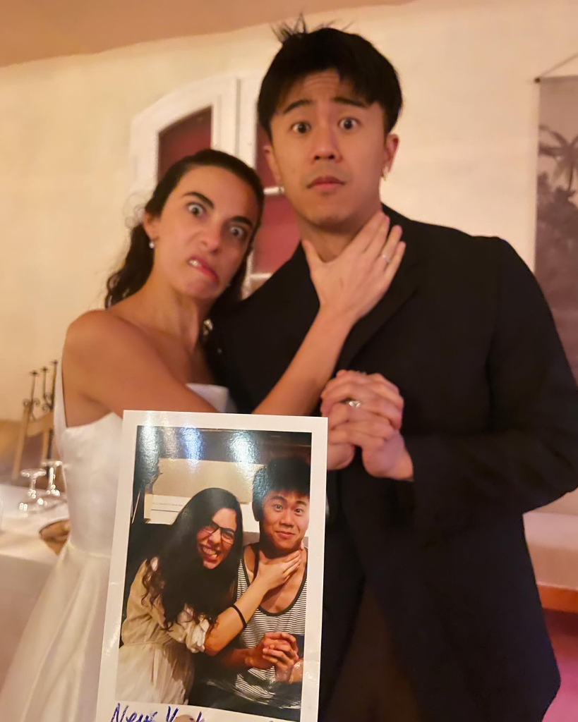婚宴席間同學曬出KEVIN當年求學的青澀照,比較之下竟然與現在的體重相差了13公斤(當時83公斤),KEVIN也自嘲自己這幾年真的有吃比較少了(笑),此趟柏林之旅KEVIN也跟同學們一起在腳上刺了『三隻小雞』的可愛圖騰,除了圖案可愛賣萌以外,為的是紀念這段超過十年深刻又難得的友誼。