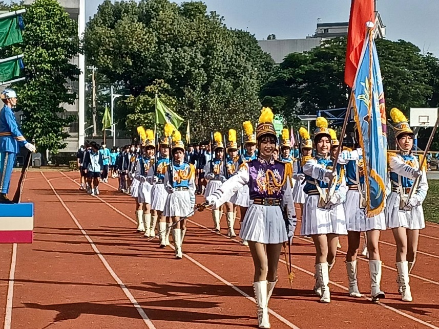 【記者 劉春生/雲林 報導】由今年新上任校長吳星宏主持,以「榮耀土商、幸福校園」寫在司令台兩旁象徵新氣象,吳校長表示:運動會融入108課綱核心素養之精神,全校各班由性別平等、人權、品德、生命、法治、科技等十九項教育議題擇一為主題的創意進場揭開序幕。