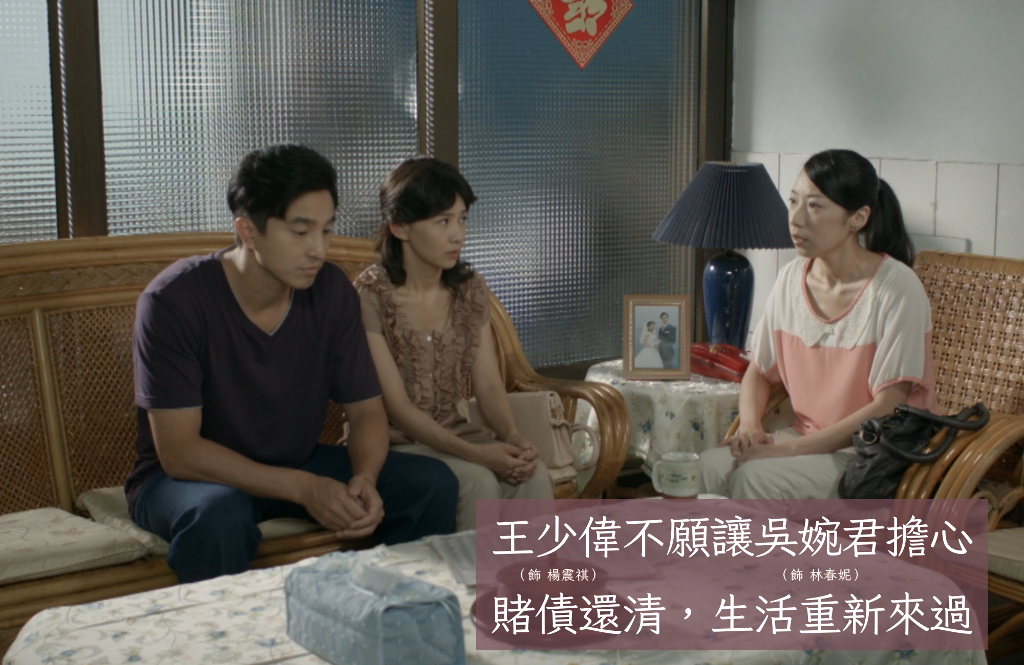 王少偉跟吳婉君兩人飾演的夫妻關係,終於還是走到了挽救不了的這一步。震祺不再賭博後,全心全意做一個好爸爸好丈夫春妮也在他的改變中找回了震祺的好,沒想到,震祺因為工作的關係開始酗酒,還會對春妮動粗!終於春妮再也成受不了這些壓力與傷害…