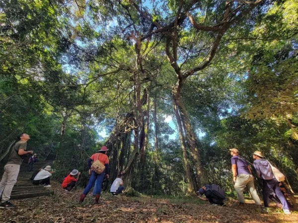 在這處依海倚山的排灣原鄉,從小跟隨父親闖蕩山林的少雲姊領著大家展開長約2公里,野趣十足的山豬窟森林步道生態導覽。穿山甲挖的坑,僅分布於恆春半島和台灣東南部的愛玉表親「大果藤榕」,老茄苳巨樹、九芎大樹、夫妻樹等生機勃發!最有看頭的當屬國寶級、深獲國內外關注的台灣原生種奇花異草和千年神榕,佔地兩千多平方公尺的千年榕樹擁有力拔山河的霸氣與壯麗,可在此抱樹、靜坐冥想。