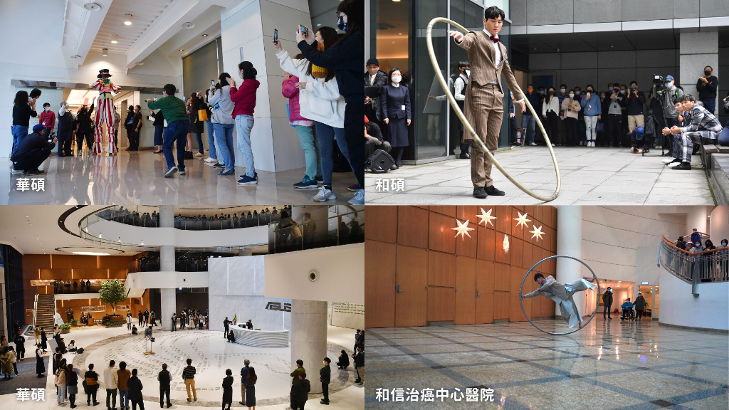 表演藝術家王柏森帶著靜思書軒小志工及大環藝術家楊世豪,12月29日趁著中午休息用餐時間,開始在華碩、和碩與和信三個大型機構內部,進行「快閃」表演,提醒關渡的好鄰居們,忙碌一天下班後,就讓藝術、蔬食的美好,增添生活的儀式感,結束工作模式切換到放鬆模式。