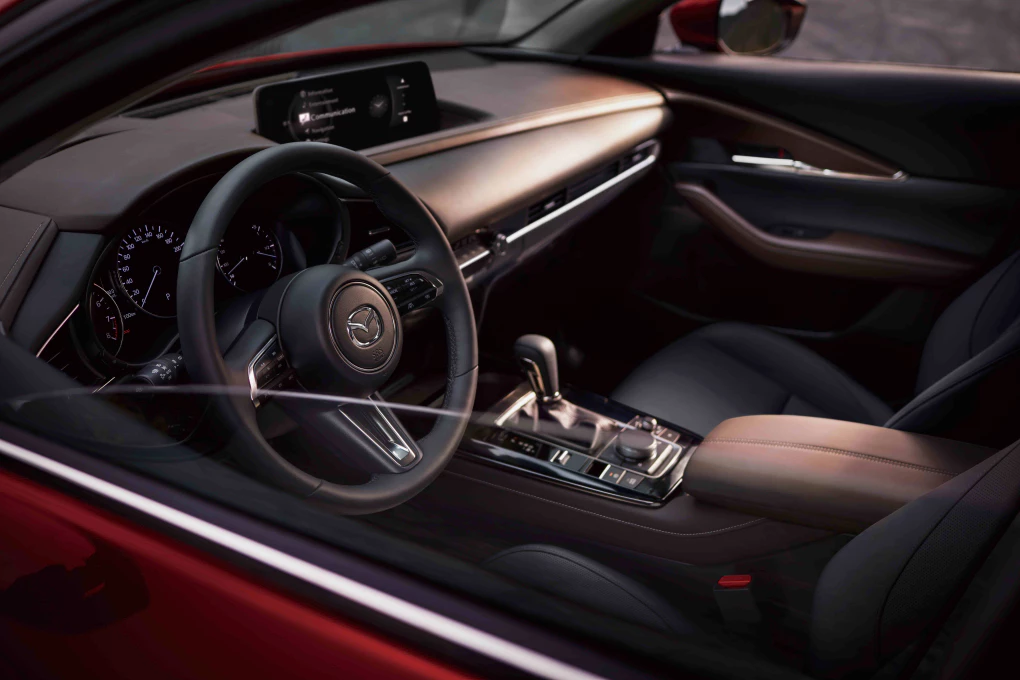 MAZDA CX-30 以精品般的跨界革新休旅之姿,結合簡約優雅的魂動設計與細膩流暢的車身線條,透過絕美吸睛的光影色澤襯托 CX-30 獨特不凡的內在品味。車室內裝延續日本職人工藝,開啟車門後,沉穩優雅的雙色調內裝盡入眼底與 Smart Keyless 免鑰匙啟閉系統、方向盤換檔快撥片、雙區獨立恆溫空調系統等便利配備,展現精心雕琢的車室氛圍。