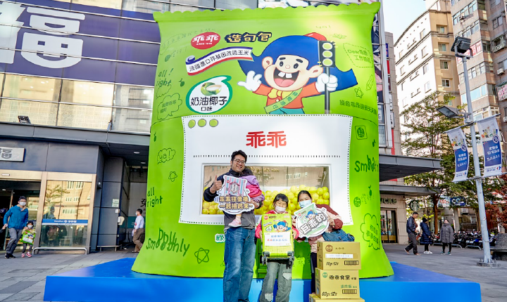 臺灣「國民零食」乖乖於已深耕在地55周年,持續「挺在地」的精神,特別將素有「保庇」意象的綠色乖乖放大450倍!成為兩層樓高的巨型扭蛋機環台巡迴展示,希望讓乖乖的好運能持續帶給國民。綠乖乖扭蛋機更提供超過百項獎品,包含上市新品、野餐墊及行李箱等熱門周邊商品都有機會扭到帶回家,破解額外任務再抽Switch!活動自11月18日開跑在各地巡迴,本周末11/25至11/26將來到台灣科技重鎮新竹市的SOGO百貨,歡迎民眾前往朝聖,轉扭蛋搶打卡!