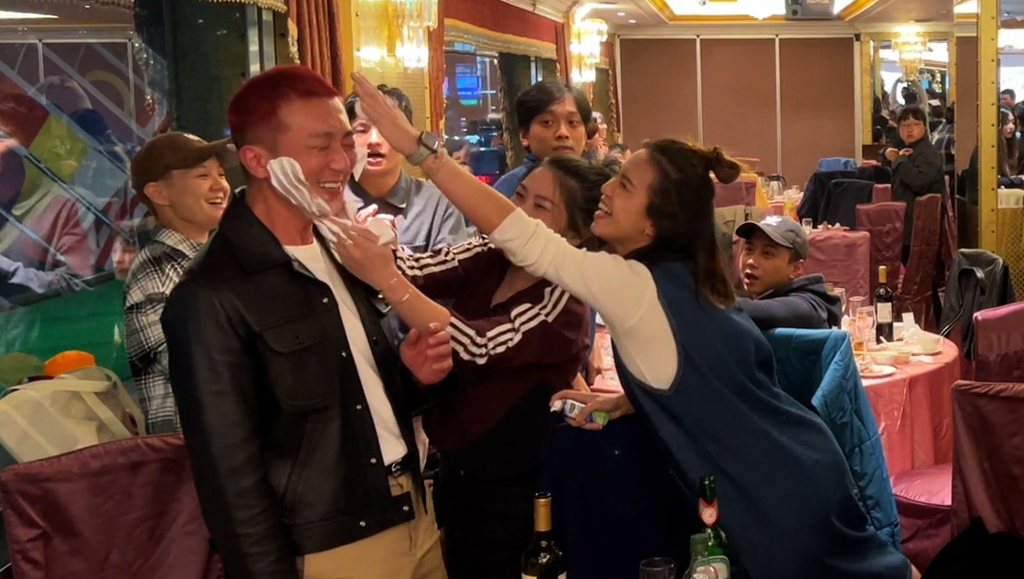 ▲ 《叫我驅魔男神》殺青酒巧遇懷秋生日,高捷帶頭齊唱生日快樂歌。(圖:光盛影業)