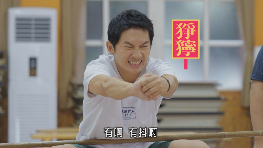 更難的進階訓練在等著兩人,板凳紮馬步、拿獅頭、