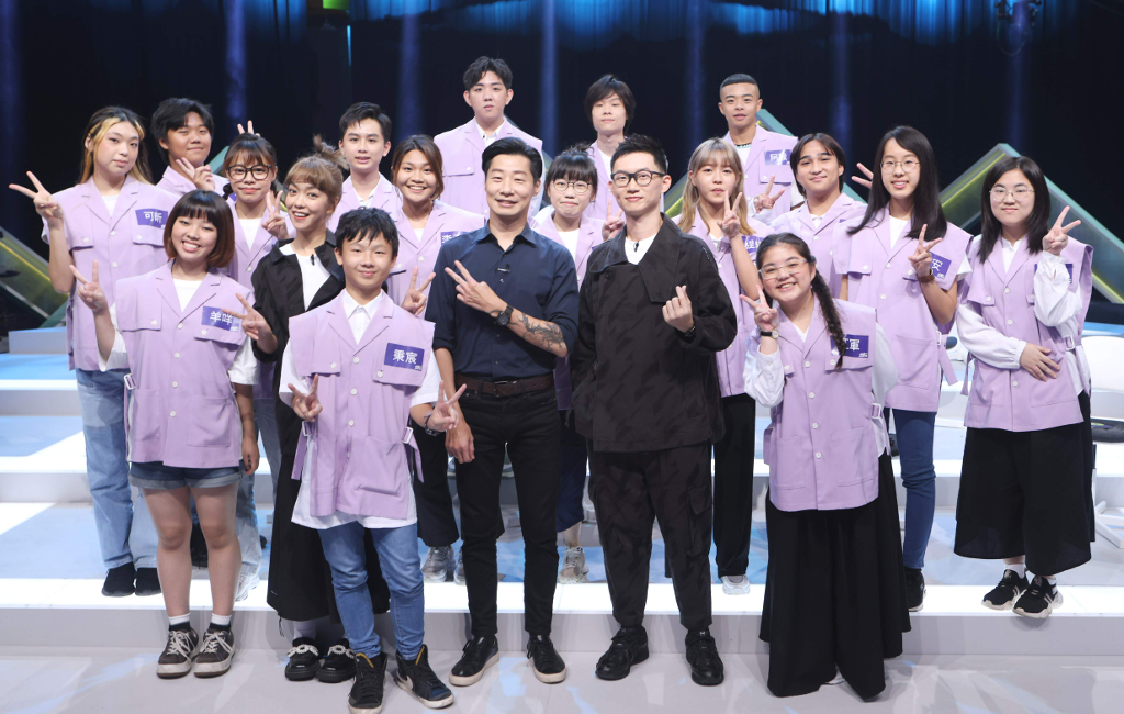 ▲ 大霈、視網膜(前排左2、右2)主持公視訪談節目《哈囉!你給問嗎?》,邀來立委林昶佐(前排左起第4),也是閃靈樂團主唱Freddy上節目。(圖:公視)