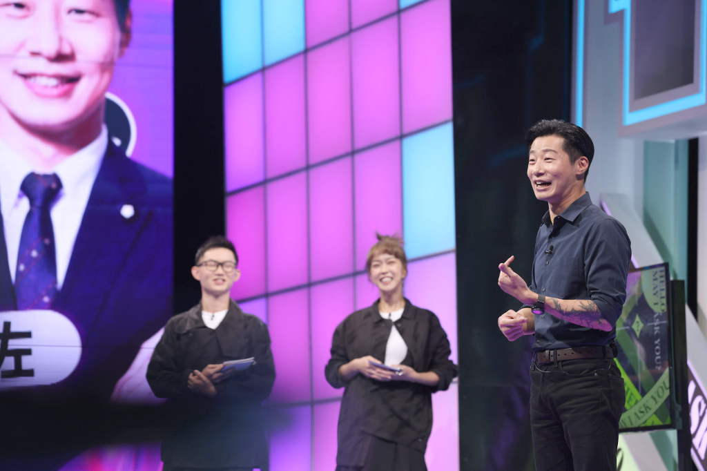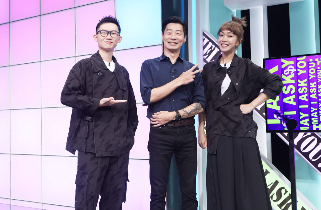 ▲ 立委林昶佐(右),也是閃靈樂團主唱Freddy上大霈、視網膜(中、左)主持公視訪談節目《哈囉!你給問嗎?》節目 大談女兒趣事。(圖:公視)