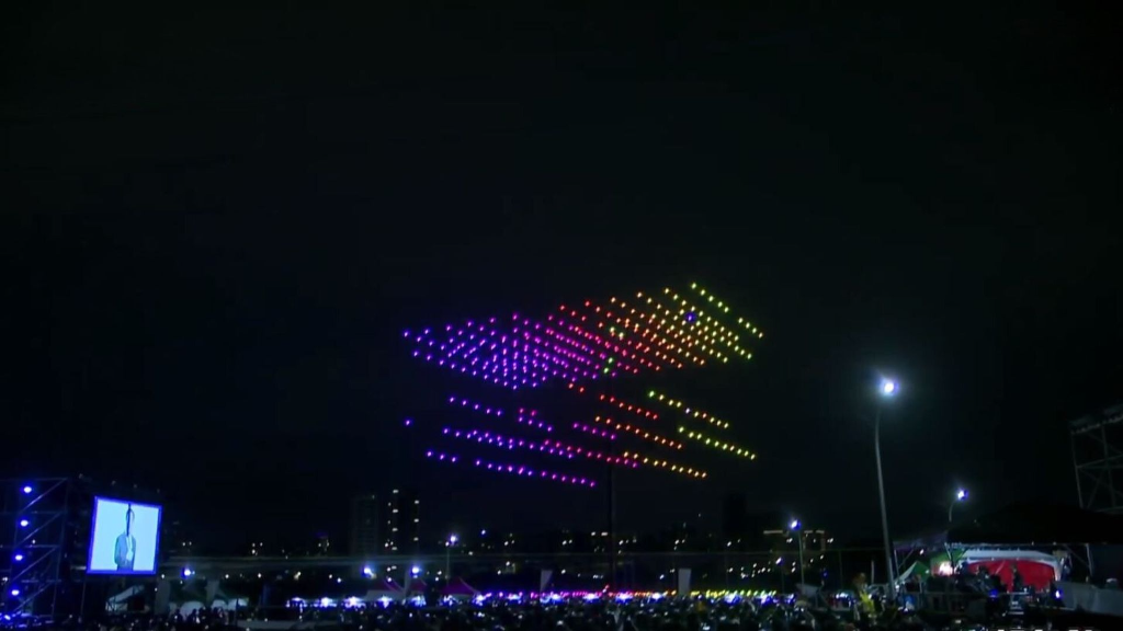 當上萬發煙火躍上艋舺夜空時、瞬間火樹銀花美不勝收,而當無人機升空、以絢麗光點排出素還真的影像、在夜空中現身時,更掀起現場一波高潮,讓觀眾驚呼連連,活動現場不僅有素還真的英姿照亮台北夜空,更有眾多實力派偶像團體人氣歌手及樂團輪番上陣演出,場面相當熱烈。
