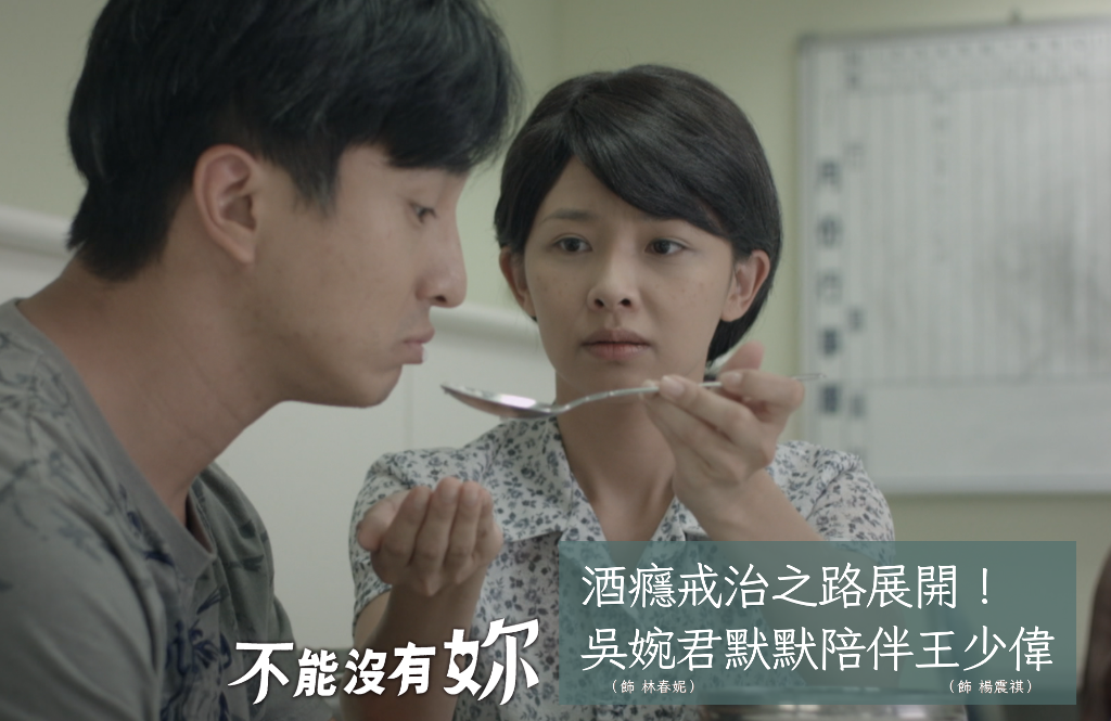大愛劇《不能沒有妳》這星期進入劇終倒數,王少偉飾飾演的楊震祺被送到精神病房戒酒,吳婉君飾演太太林春妮答應每天會送晚餐來給王少偉,穩定他的情緒,只是戒斷症狀讓王少偉完全變了一個人。
