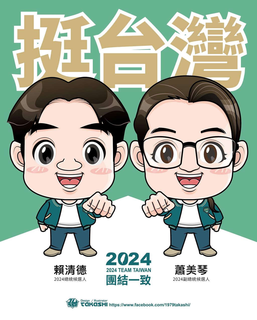 Takashi說,他都是利用晚上休息時間作圖,從候選人的臉書挑照片發想,平均一張圖作畫時間近2個小時,他覺得最困難的部份是要畫出合適的肢體動作,這往往讓他絞盡腦汁,想盡辦法要貼近人物的特色,,此外,他很期待賴蕭配,因此3個月前就已畫好賴蕭配Q版圖在等,消息一確認隨即PO文,前兩天看到蕭美琴定裝照,也馬上修改Q圖髮型,非常用心。