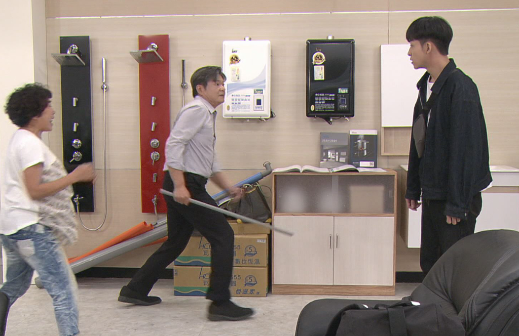▲ 陳文山(中)劇中因為兒子遭退學憤而體罰亮曦。(圖:台視)