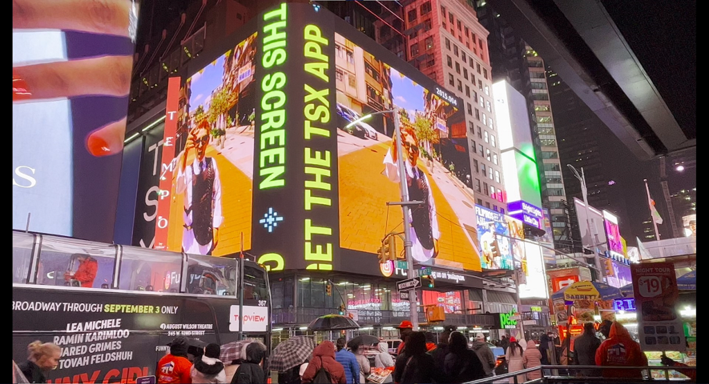 ▲ 潘若迪全民運動單曲《Here We Go》MV在紐約時代廣場播放。(圖:艾迪昇傳播)