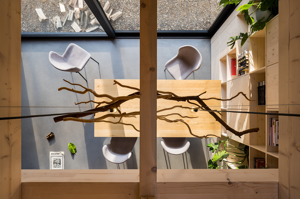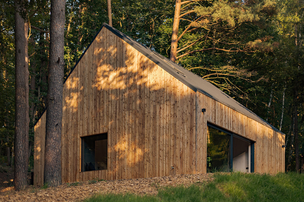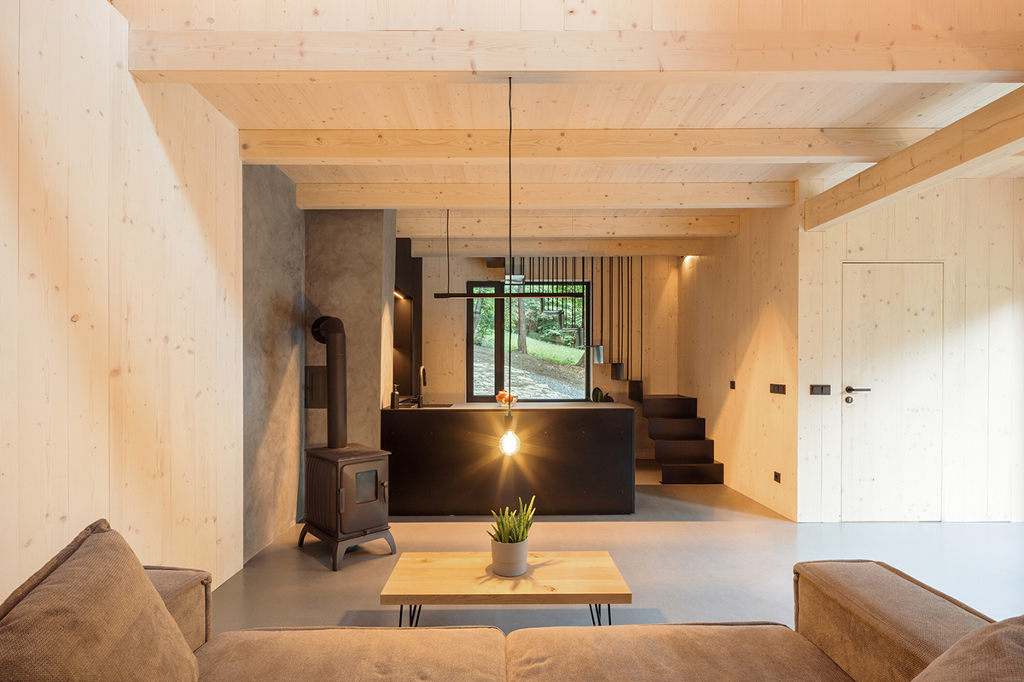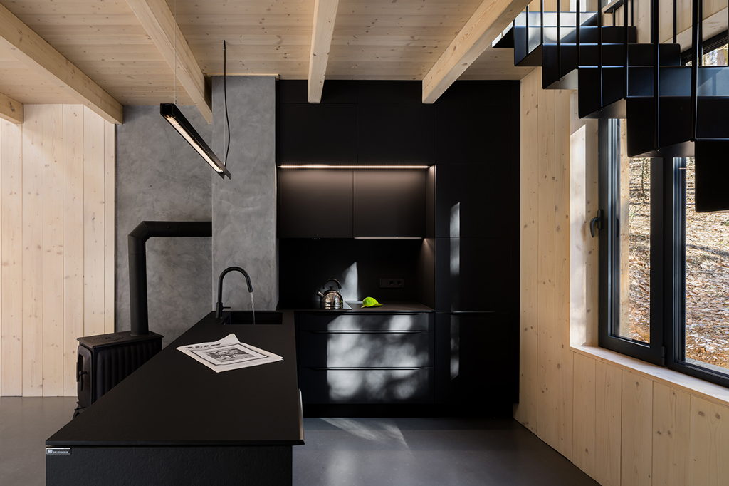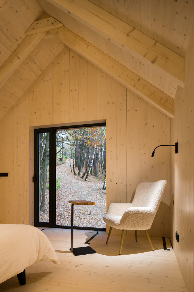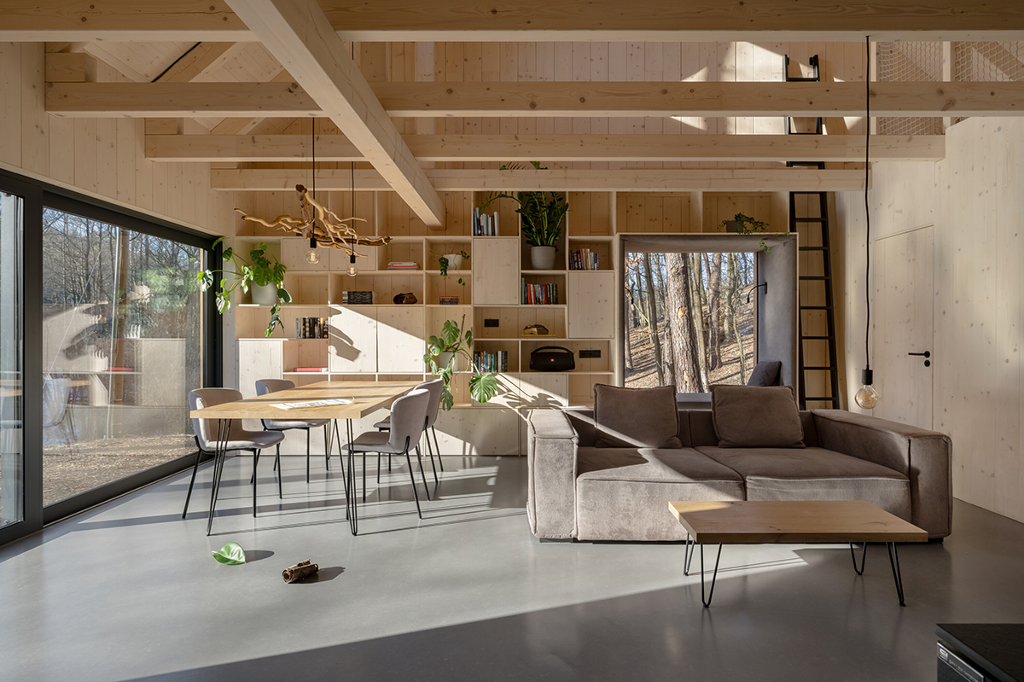 Adam Hofman以斯堪地那維亞極簡主義風格為底,將整間木屋的裝修元素去蕪存菁。只留下使人感到熟悉舒適的設計,能夠專心工作而不受干擾。寬敞的露台和四面透光的大片窗戶使室內和周圍環境自然地融為一體,讓充滿生機的大自然成為創造力和靈感的源泉。