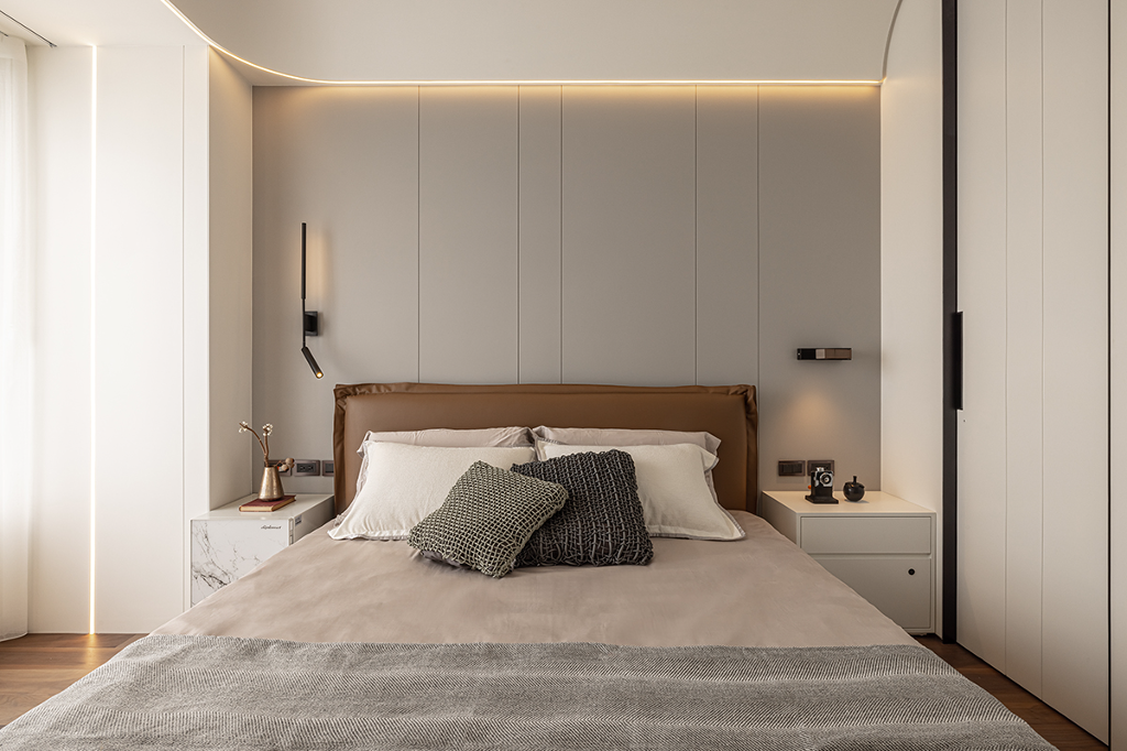 簡約床架:選擇線條簡單的床架,可以是木質或金屬材質,突顯整體的簡約感。