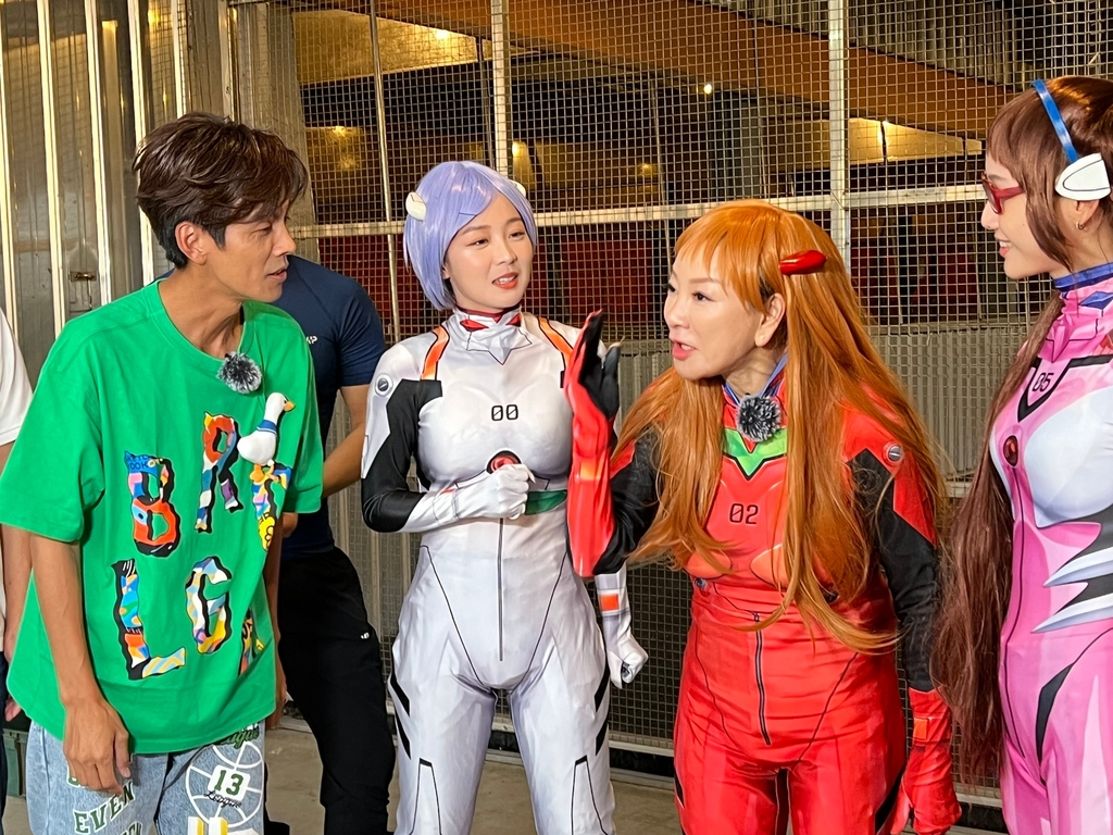 ▲ 籃籃、楊繡惠跟君白打扮成新世紀福音戰士在熱舞。(圖:民視)