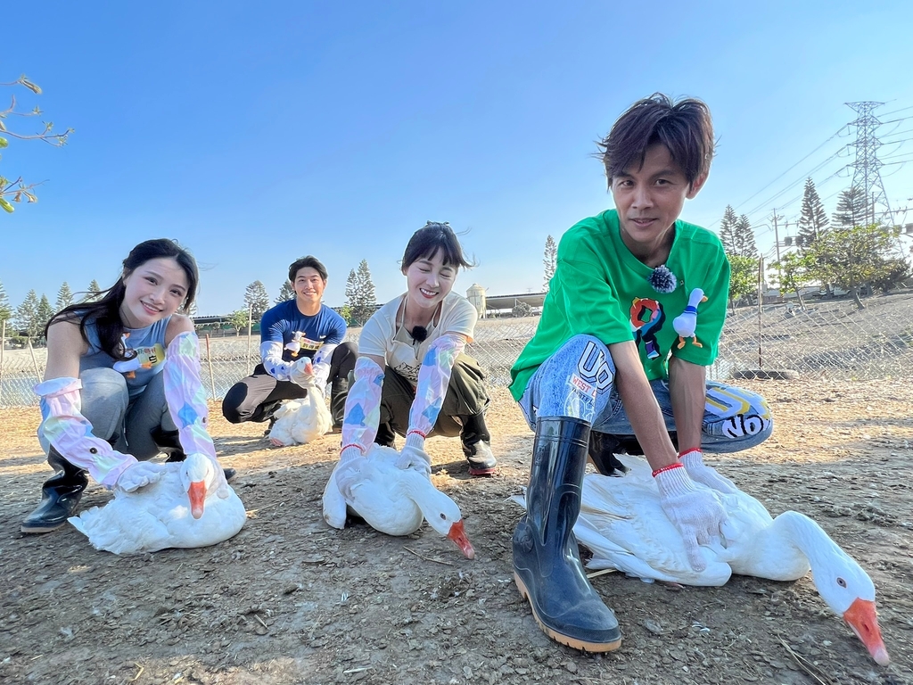 ▲ 《綜藝新時代》到雲林四湖體驗養鵝達人的工作。(圖:民視)