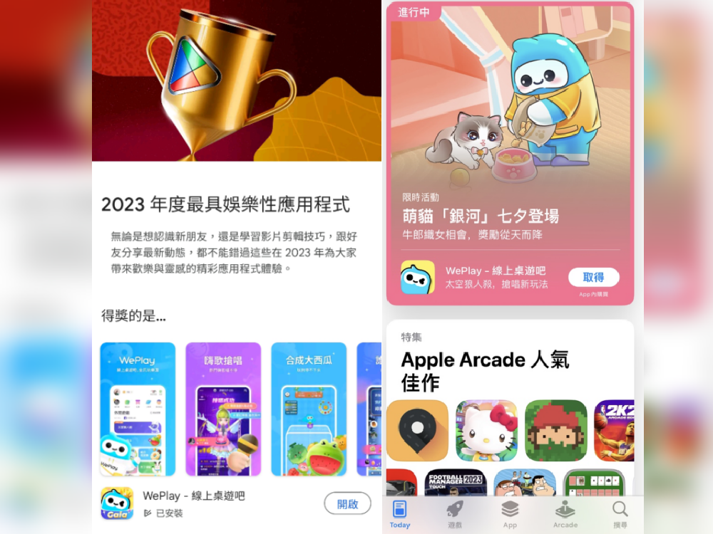 想知道2023年大家最喜愛哪些APP嗎?Google Play最新名單出爐,受百萬年輕人歡迎的線上聚會遊戲平台WePlay線上桌遊吧,在台灣一舉奪下Google Play 2023年度最具娛樂性應用程式,這是繼獲得AppStore Today推薦之後,WePlay在台灣市場再次獲得榮譽。