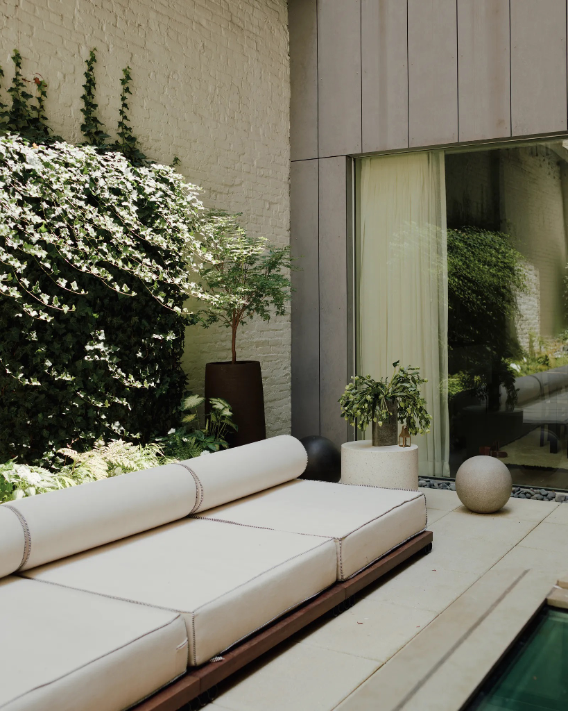 這個獨特的場域本身擁有15坪多的私人戶外空間。但在客戶發掘它的潛力之前,已經空置了兩年。這對夫婦一看到這個地方,便被其獨特的混凝土吸引。他們認為這座帶著粗獷主義氣息的稀有建築,在合適的人手中定能成為一個優雅極簡而舒適的家。