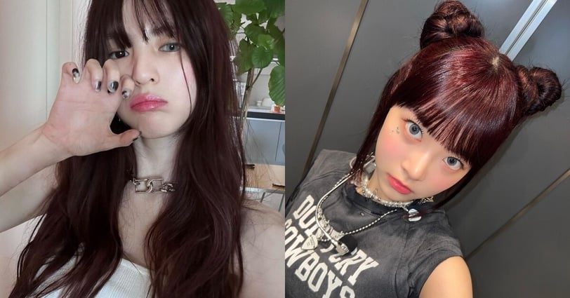「煙燻莓果色」同樣是一款不用擔心染了會失敗的顯白髮色,保留深髮色的質感和沉穩,室内是比較自然的暗红色,到室外整理會稍微亮一點,染完會看上去高級有個性,同時亦不會給人過於張揚的感覺,難怪LE SSERAFIM恩採、韓韶禧都愛不釋手。