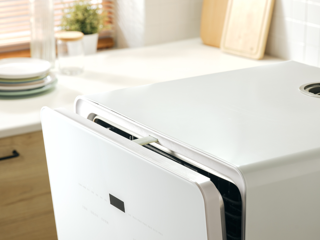 嘉儀KE桌上型洗碗乾燥機不僅在洗淨模式滿足使用者需求,還為使用者設計了三道強效除菌程序:80⁰C高溫洗淨、自動開門熱風烘乾、自動關門紫外線除菌,有效除菌高達99.9%,使用碗盤更加安心。除了80⁰C熱水高溫沖洗碗盤,在烘乾除菌模式設計上,還特別加入了一般大型高階洗碗機都沒有的「自動開門烘乾與自動關門除菌」功能。洗淨模式完成後,嘉儀KE洗碗乾燥機會自動開門排出濕氣,有效避免悶臭異味產生,並加速烘乾行程,實現省電節能目的;隨後,也會自動關閉門,進行密閉式UV紫外線除菌流程,確保除菌過程更加乾淨和安全,洗完碗盤也可直接存放至嘉儀KE洗碗乾燥機內作為收納櫃使用。