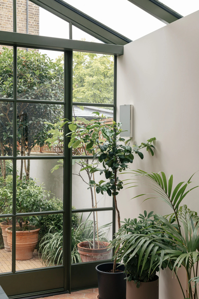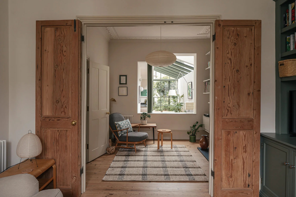 設計師細膩流暢地在各個場域間保留具流動性的私密空間,使用木質元素和沉穩的色調鋪底,在家中各角落放置盆栽並以綠色元素點綴,運用軟裝傢飾和玻璃天窗為莊嚴肅穆的百年老宅捎來綠意萌芽的新意和溫暖。