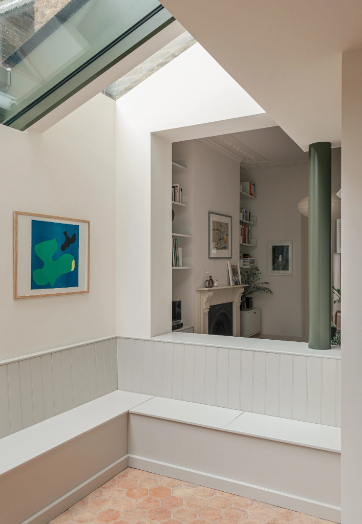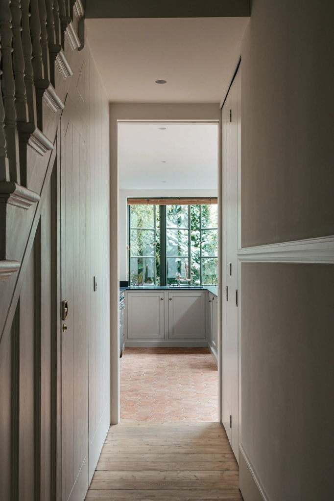 曾以盛產油潤煙燻威士忌聞名的倫敦小鎮坎貝爾,坐落著一棟維多利亞式的房屋──非對稱的主體結構、山牆式的屋頂立面、門廊和陽台;還有豐富多樣的外飾面材料:磚、瓷磚、裝飾性的瓦片樣式。這棟老房被周遭蓊鬱繁盛的植物環抱,恬淡的綠意為這間擁有美好時期家居元素的建築增添舒適的氛圍。屋主渴望設計師能使老房重生的同時保留並修復牆面的復古風格,將時代的經典印記與新時代元素互融成美好樣態。