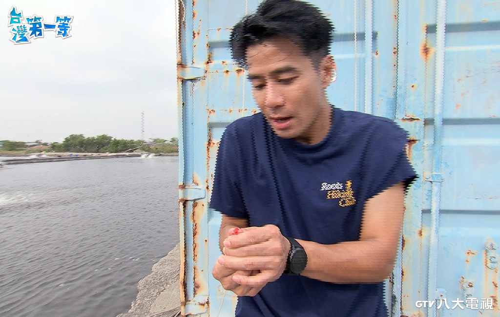 ▲ 郭彥均的手被龍虎斑刺傷見血。(圖:八大)