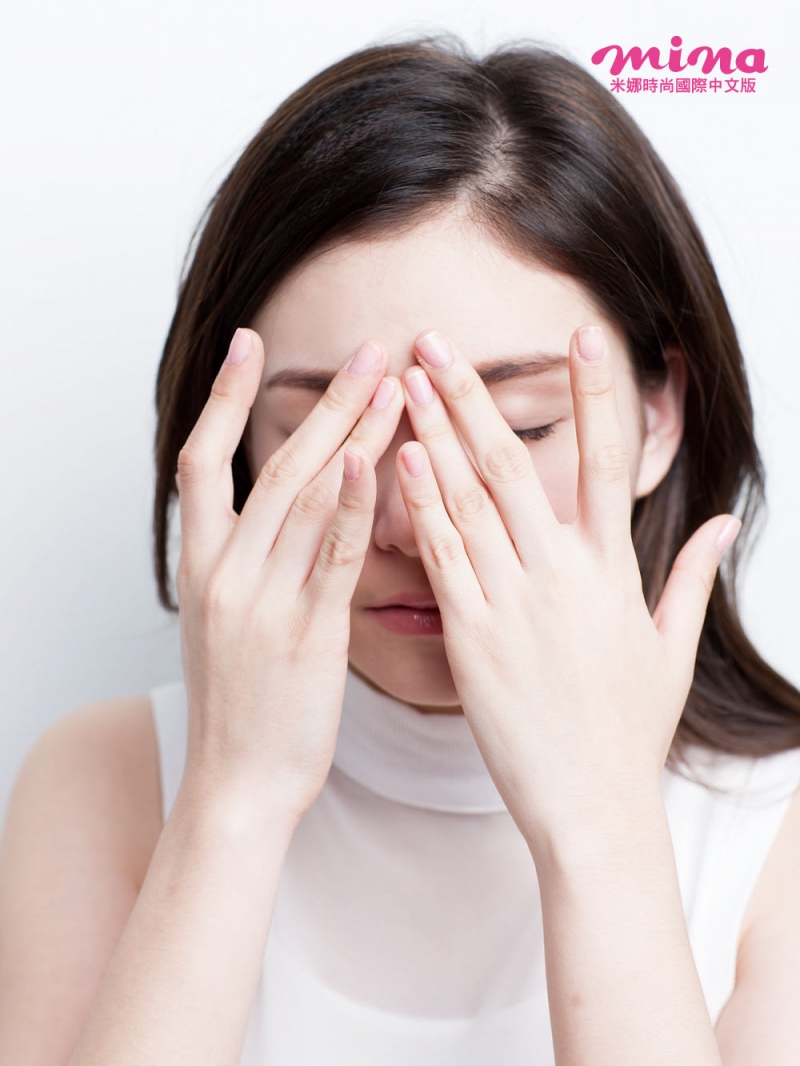 (5)用掌緣力道按壓眼周,浮腫的情況也可藉由按摩改善。