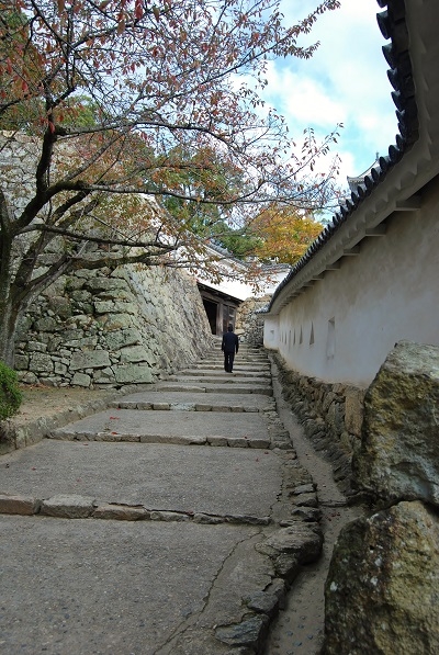 在到達姬路城主體建築之前,得先走進彎彎曲曲如同迷宮的坂道裡,若你是數百年前城主的敵人,恐怕在這些坂道上就會中了好幾道埋伏;不過話說回來,當人爬到最頂樓時,不免要同情起從前的藩主—他絕對是全世界最沒安全感的人。