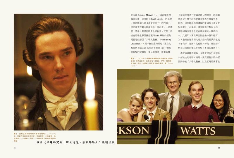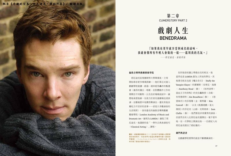 不論是一頭捲翹亂髮、瘦削性感的夏洛克.福爾摩斯,或是《星際爭霸戰》裡冷酷高壯的反派可汗,還是《哈比人》裡邪惡強大的巨龍史茅革,抑或《維基解祕》的爭議性人物亞桑奇、《模仿遊戲》的電腦科學之父圖靈,他以高超的演技、澄澈的雙眼與低沉的磁性嗓音,瞬間奪走了觀眾的心。