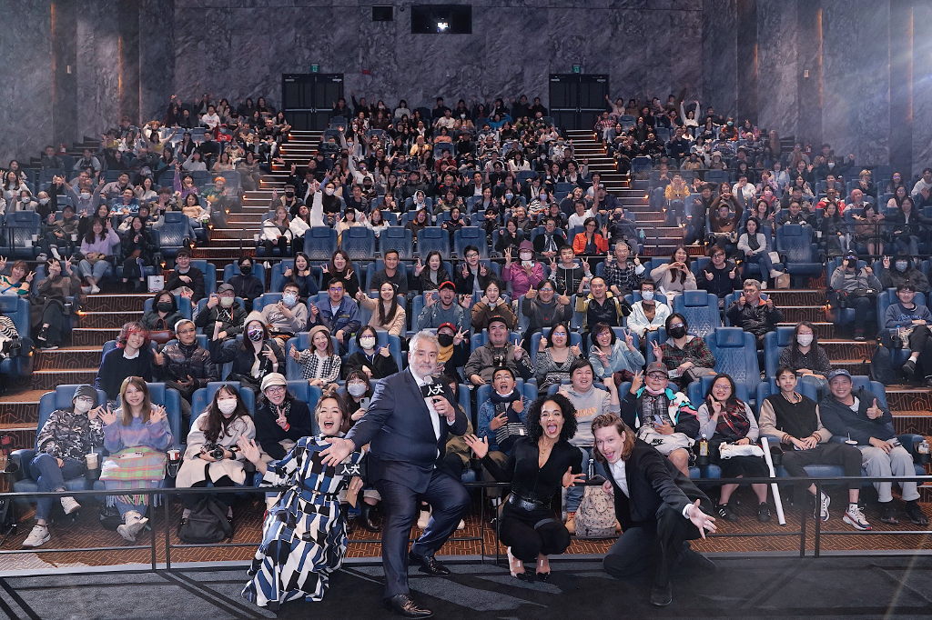 ▲ 《人犬》國際大導盧貝松、卡賴伯蘭李瓊斯與觀眾合影親民程度爆表。(圖:傳影互動)