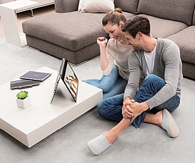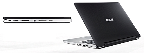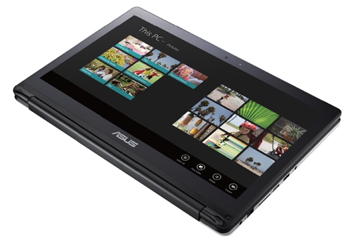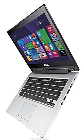拜ASUS獨家的無段式4齒輪軸承設計,TP300的螢幕背蓋可以進行360度翻折,90度打開螢幕上蓋即為可用鍵盤輸入操作的筆電模式;上蓋360度向後翻折,不用多餘步驟,筆電一秒就變Windows 8.1平板電腦,用手指觸控即可輕鬆操作;你也可以將螢幕上蓋向後翻折成倒V字型站立,變成所謂的「影音多媒體模式」,適合用在觀賞電影或當作數位相框這類用不到鍵盤的情境;而螢幕直接反折180度、鍵盤面朝下的多人分享模式同樣適於影片觀賞或是翻閱電子書,讓TP300適用於各種不同的使用情境,不過由於螢幕仍與鍵盤相連,所以整機重量約為1.7公斤左右,對手持攜帶的負擔較大些。