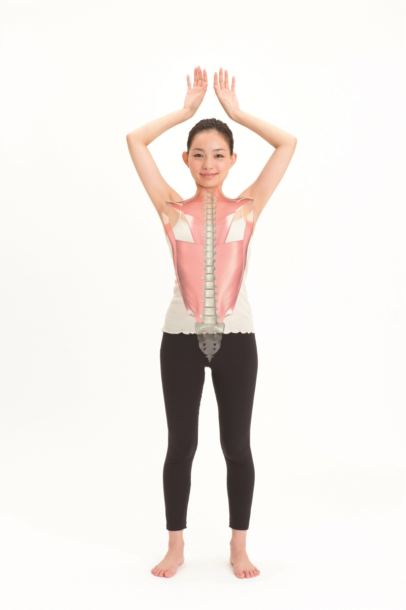 舉起雙手搖晃,舒緩背部的緊繃感,打造促進淋巴循環的環境。由於肌肉會互相拉扯影響,勤於保養身體正面和體側肌肉,更有助於提升放鬆效果。