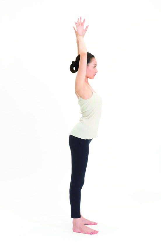 這項保養的目的在於伸展手臂,放鬆身體後方的肌肉。若雙手往前舉就會失去功效,拗背或弓腰也會使肌肉緊張。