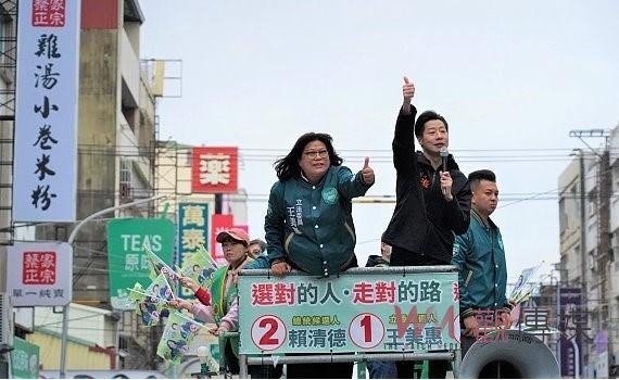(觀傳媒嘉義新聞)【記者陳惲朋、郭政隆/嘉義市報導】距離總統、立委選戰投票約只半個月多,在這短兵相接的時刻,民進黨現任立委林昶佐12/27日下午特別來到嘉義市,替同黨籍立委王美惠助選,一同上戰車沿街拜票,親切替向鄉親們問好,兩人也展現超高人氣,沿途吸引不少支持者特別走出家門手比大姆指,替王美惠加油打氣,更高喊「1號凍蒜」,王美惠也表示,選舉倒數17天「拚第一、一定贏」,絕不會辜負鄉親們的期待。