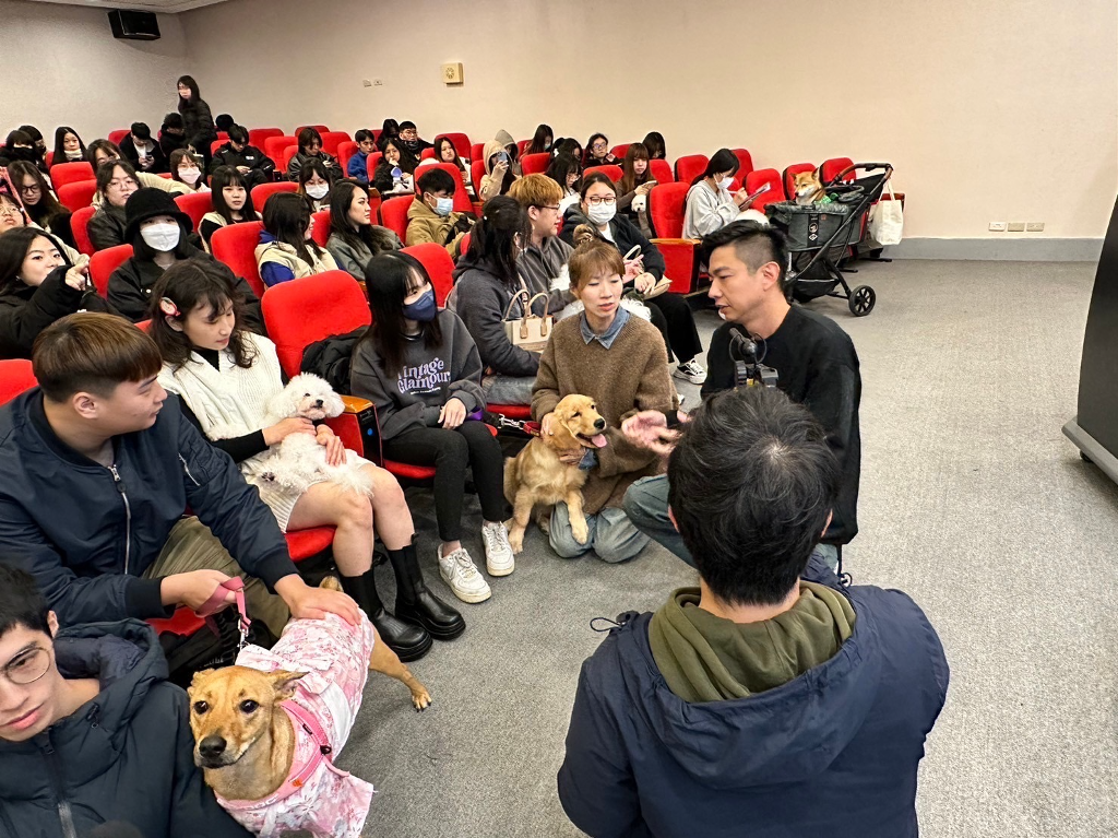 熊爸講座過程生動活撥,先細心針對現場犬種進行解說,告訴學生各種犬類的由來及應注意的行為。提問時間他的回應更達到高潮,同學幽默又靈魂麻辣拷問他:「狗狗真的改不了吃屎嗎?」「狗狗是真的看得到阿飄(鬼)」嗎?」「狗撒尿要糾正嗎?」這些也都是養寵物的飼主最常關心大事。