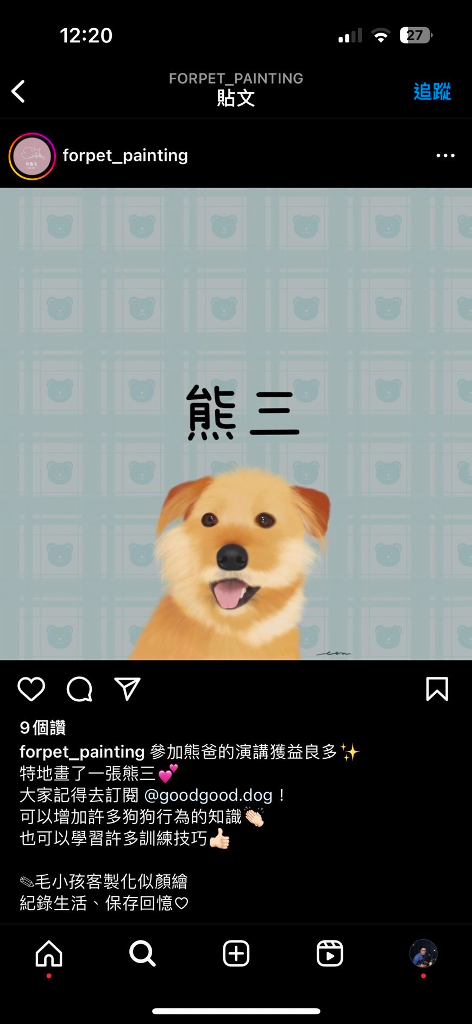 妙的是,熊爸的寵物「熊三」知名度不亞於他,當天很多同學慕名搶見熊三,猛問熊爸:「請問熊三在哪裡,我們要看熊三!」甚至還為牠繪製畫像和自製的寵物零食想給熊三,熊爸聽了超開心,「不過今天天氣不好又下雨,就沒有帶來了」,令好多同學喊可惜。