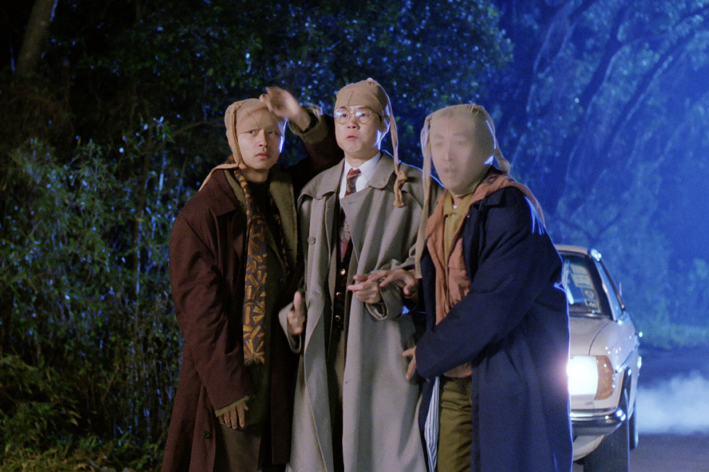 ▲ 《家有囍事》將加入刪剪橋段,讓(圖片左起)張國榮、黃百鳴、周星馳絲襪套頭,跟歹徒展開超鬧火拼槍戰。(圖:采昌)