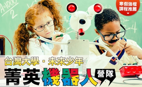 台灣大學、未來少年聯合主辦的菁英機器人營隊,由美國普度大學機械工程博士郭彥甫全程親授,台灣大學生物產業機電工程系團隊設計專屬教案、擔任小組助教,透過造型千變萬化的「LEGO機器人」,學習圖形化程式設計、機器人實作、馬達及紅外線感測器組裝。