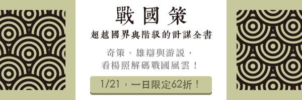 《戰國策》不只是這群特殊人物的言行記錄,這部千古奇書採擷編織了戰國時期兩百多年間的史實與想像,完全呈現出那段走向大一統結局之前,動盪無序的時代氣氛。