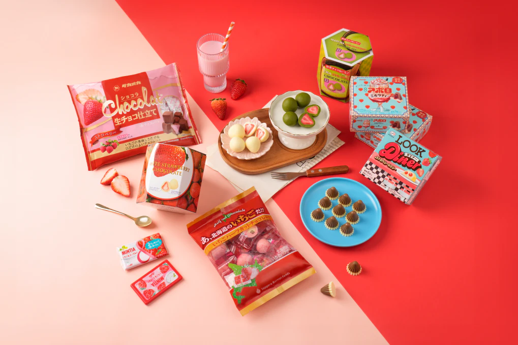 口感豐富的「不二家Look美式Diner草莓可可」外層白巧克力與草莓脆片完美融合,內層包裹著草莓軟糖,酥脆又Q彈的口感,讓人欲罷不能;最經典的是奶茶與大粒草莓碰撞,產生的完美化學效應,品嚐一顆「明治大粒阿波羅草莓夾餡可可粒-奶茶風味」就知道,獨樹一格的草莓流心風味細膩,一掃巧克力的甜膩;想來一顆有乳酸風味的草莓巧克力「朝日草莓優格味糖」以明信片盒的設計盛裝輕巧方便,隨時與朋友分享優格草莓細緻的風味;最有人氣的「高岡 草莓可可風味糖」以生巧克力的概念製作,吃得到草莓的新鮮純粹、奶油的香濃滑順,輕柔滑順的口感讓人無法抗拒;喜歡草莓果實纖維口感則推薦「秀幸白巧克力草莓風味夾心糖」採用整顆草莓果乾,一口氣推出兩種風味(白巧克力草莓/抹茶草莓 )滿足螞蟻控口腹之慾,微酸且富含果香的草莓,昇華巧克力的質感,讓人想起初戀的青澀回憶。