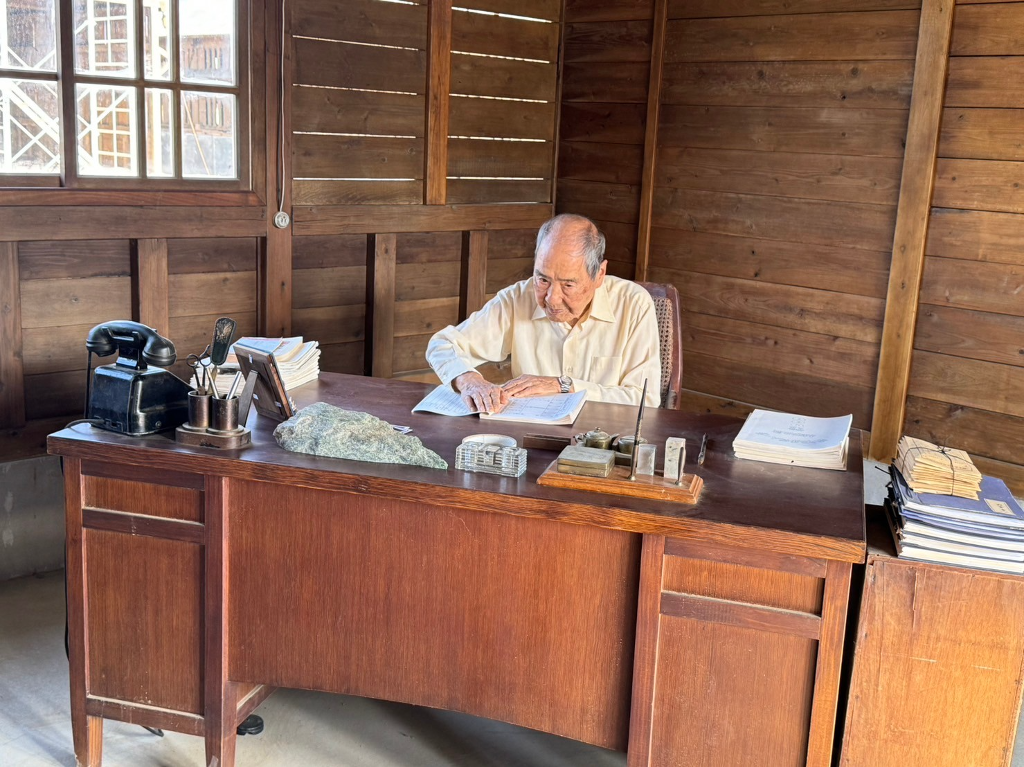 ▲ 張則周前輩坐在軍官辦公室感受不同心情。(圖:客家電視台)