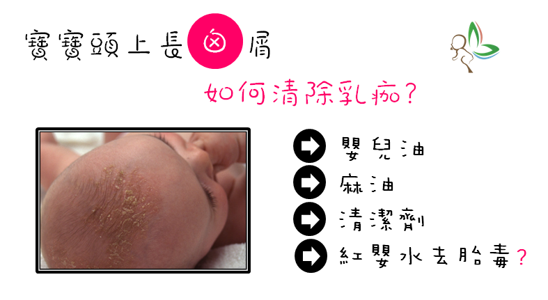 利用嬰兒油將乳痂泡軟之後,再用一點含皂清潔品搓洗,就可以減少乳痂,並將嬰兒油一同清除。