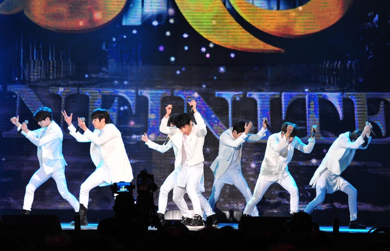 韓國大勢男子團體INFINITE錄影當天才抵台,立刻馬不停蹄前往《2015超級巨星紅白藝能大賞》小巨蛋錄影現場,壓軸演出的7位大男孩才一上台,就先嘴甜秀中文跟台灣粉絲打招呼,並獻上羊年吉祥話,聖圭說:「羊羊得意」,被小燕姊讚瞇瞇眼很可愛!東雨說:「羊年到好運到」還小秀一段撒嬌舞,七人最後表演中文歌「小小羊兒要回家」,可愛腔調讓粉絲歡聲雷動。精采演出的INFINITE身穿帥氣白西裝獻唱三首經典歌曲「Back」、「Beforethe