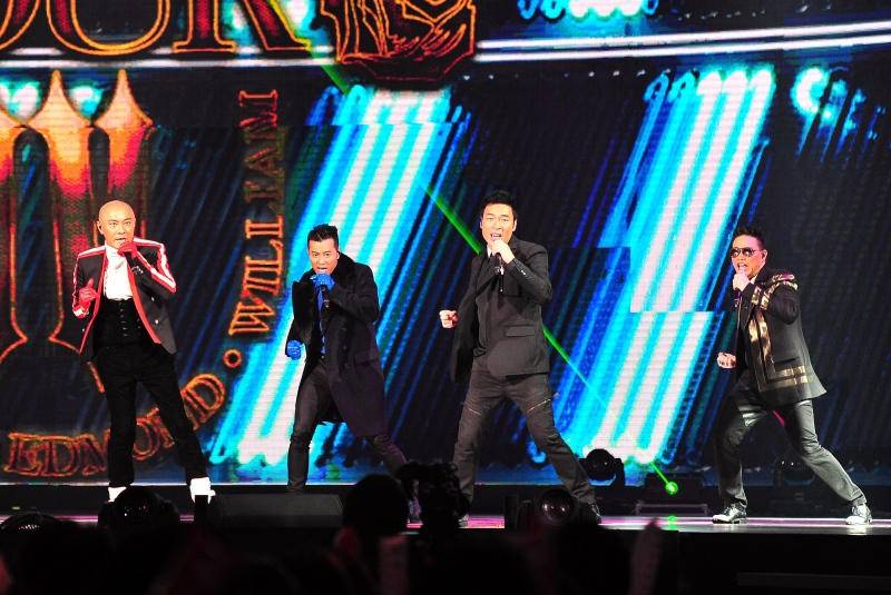 Four」首度強勢登「台」,首先演唱主打歌「Big Four」打頭陣,緊接著由蘇永康深情獻唱經典情歌「男人不該讓女人流淚」,全場觀眾聽得如癡如醉,梁漢文與許志安則合唱「拔河」,許志安演唱輕柔甜蜜情歌「上弦月」,觀眾聽得欲罷不能。隨後登場的張衛健,先唸戲劇經典口白「涼風有信、秋月無邊,虧我思嬌的情緒好比度日如年...。」,馬上喚起劇迷回憶與歌迷尖叫,張衛健演唱成名曲「你愛我像誰」,四人最後合唱紅遍台灣大街小巷的電音勁歌「眉飛色舞」,大秀特別排練的精湛舞藝,「Big Four」魅力引爆小巨蛋!Big