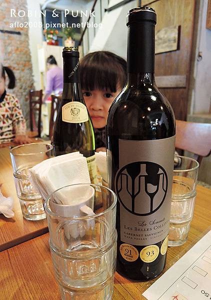 飲用水則是裝在紅酒瓶裡,每桌一瓶感覺好像在高級餐廳用餐~(大心)