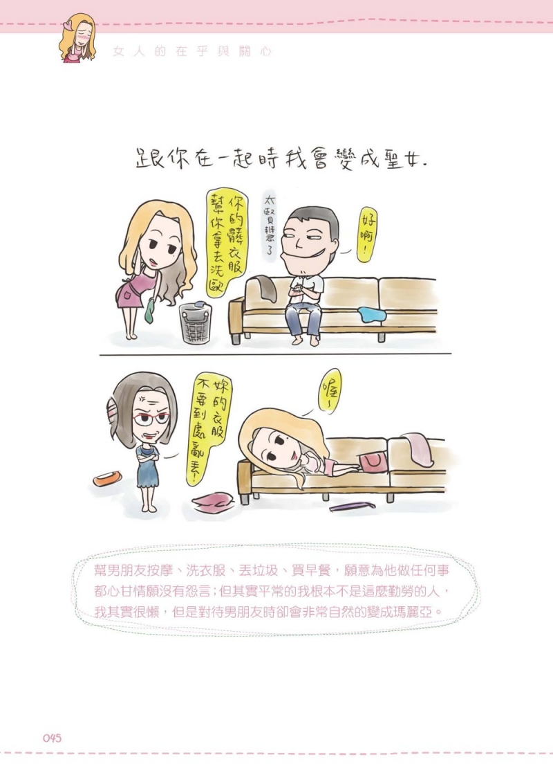 超強愛情觀察員卡文,在書中就分別以男女角度呈現愛情價值觀的差異,更點出現代男女在愛情中各種可愛又可恨的面貌。圖文繪本讀來輕鬆詼諧,易獲得大眾的共鳴;不僅可紓解在日復一日的學習與工作後的煩悶心情,更能引發你我對兩性相處的省思。讓你毫無費力解決兩性相處難題,進階愛情勝利組!