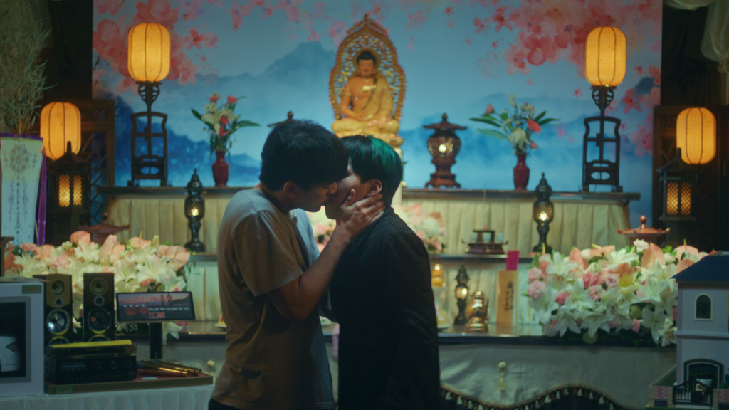 ▲ 備受矚目男男戀在靈堂前激吻。(圖:Netflix)