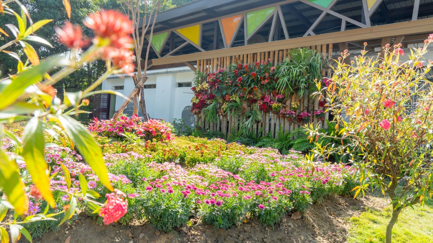 〔News586/記者陳允得報導〕炮竹一聲除舊歲,位於嘉義市區的農業部嘉義農業試驗分所外,炮仗花正沿著外牆盛放,一串串橘黃色絕美花瀑綿延逾百公尺,應景喜氣又壯觀,吸引遊客打卡駐足,不讓炮仗花專美於前,蘭潭迎新春,在月影潭心周邊也以聖誕紅與瑪格麗特及長壽菊等植栽,妝點出新春氣氛,喜氣洋洋,正適合闔家走春,享受被湖光山色擁抱的怡人心情。嘉義市一年四季氣候怡人,市府歡迎民眾過年來嘉走春,花現幸福!