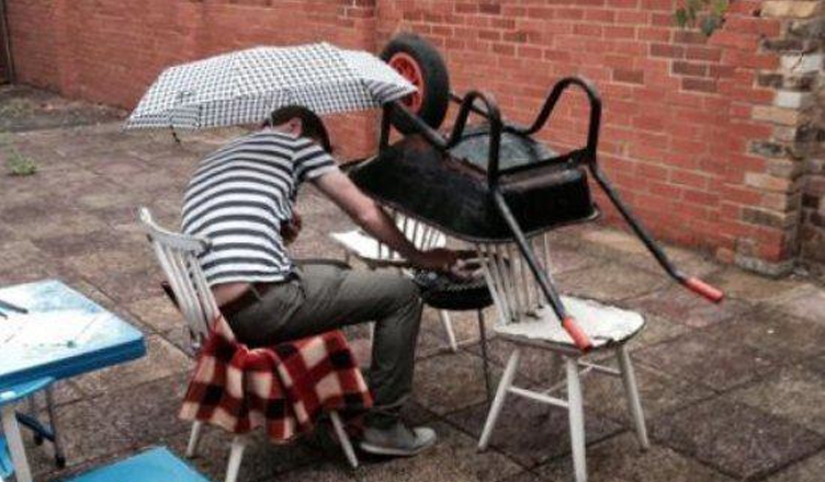 老兄…下雨天就別烤肉了吧…看你這樣搞我都飽了!